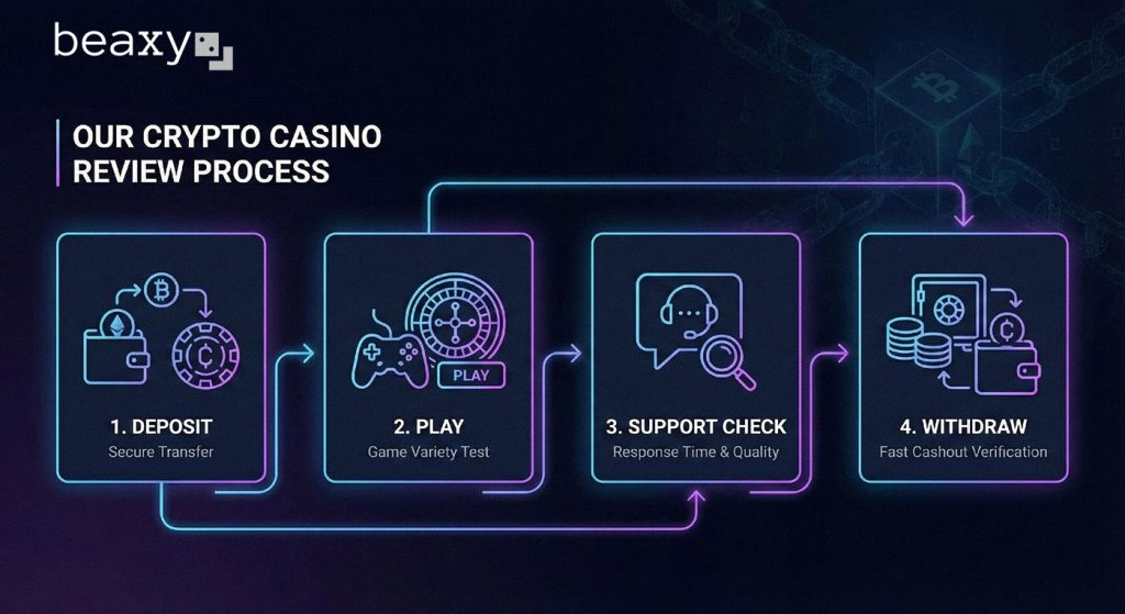- Chain Support: We verify native chain support. Sending USDT via ERC-20 (Ethereum) costs $5+. Sending it via TRC-20 (Tron) or SOL (Solana) costs pennies. If a casino only supports the expensive option, they lose points.